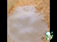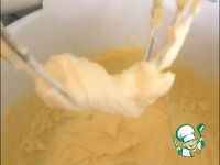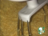 Смешиваем муку с разрыхлителем и добавляем маленькую часть муки в массу и перемешиваем на маленькой скорости |