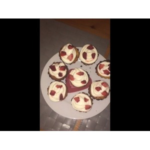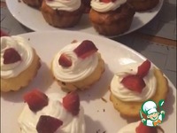 Выливаем крем в кондитерский мешок и разливаем на капкейки. Внимание! Разливайте крем на остывшие капкейки иначе крем осядет. Украшения любые, но я украсила клубникой и шоколадом. Приятного аппетита) |