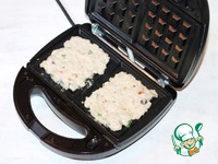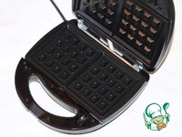 8. Открываем крышку мультипекаря и равномерно раскладываем тесто на нижнюю панель прибора. Закрываем крышку. |