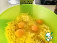 Картофель моем и очищаем. Натираем его на крупной тёрке. Добавляем яйца. |