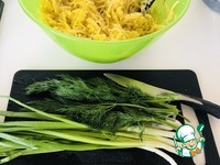 Хорошенько перемешиваем картофель с яйцами. Добавляем соль и ещё раз перемешиваем. Пусть немного постоит. А пока, помоем и нарежем нашу зелень. |