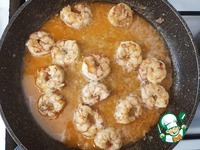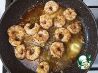 На разогретую сковороду добавляем оливковое масло и креветки. Солим, перчим их и обжариваем (по 1-2 минуты с каждой стороны). |