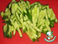 Куриное филе отварить и порезать крупными кубиками или разобрать на волокна. |