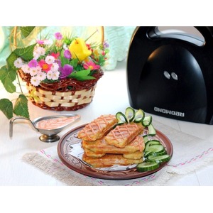 Описание: Ароматные, румяные, мягкие драники с начинкой из сосисок и чесночным соусом можно подать на завтрак, обед, ужин или на закуску. Можно взять с собой на работу. Готовила драники в мультипекаре REDMOND.