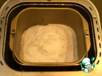 Согласно инструкции к хлебопечке закладываем продукты- у меня- сначала жидкость- йогурт, активированный дрожжи, масло, "заварка", а затем- сухие ингредиенты- мука, соль, сахар |