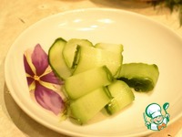 Далее все просто- нарезаем овощечисткой огурец тонкими слайсами |