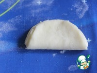 Противень выложить бумагой для выпечки. Берем кружок теста и складываем его пополам |