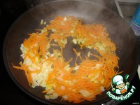 Трем морковь на средней терке, лук мелко режем, обжариваем несколько минут на растительном масле. |