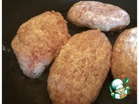 Обжарить котлеты с двух сторон на средне-сильном огне при закрытой крышке, на растительном масле. Потом можно котлеты немного потушить, добавив в сковороду воды и убавив огонь. |