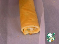 Раскручиваем бисквитный корж и смазываем его кремом, и закручиваем. Затем ставим его в холодильник. |