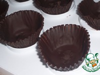 Манжетики поставить в формочки для маффин,положить 1ст .л шоколада и тыльной стороной ложки распределить по всему манжетику,поставить в холодильник застывать.