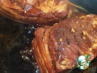 Вода выпарилась. Получается вот такое глазированное мясо. Оставшийся соус не выбрасываем. |