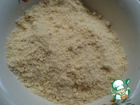 Яичную массу смешать мучной крошкой и замесить мягкое и эластичное тесто. Убрать его на 15 минут в холодильник. |