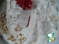 Тем временем яичные белки взбить с сахаром до глянцевой белой массы. Затем добавить измельченный арахис и перемешать. |