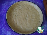 В смазанную форму с бортами выложить тесто. Я это делала руками, но можно раскатать скалкой в пласт и потом его уложить в форму. Мне руками удобней. |