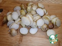 Картофель нарезать кружками. Молодой картофель я не чищу, вы можете почистить. Высыпать в глубокую миску. |