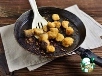Рыбу хорошо обсыпать сухарями и обжарить на том же масле, помешивая 3-4 минуты. |