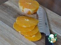 Выложить апельсин на творожную массу. Я еще под апельсиновые кружочки выложила кусочки оставшегося бисквита. НО это на ваше усмотрение. |