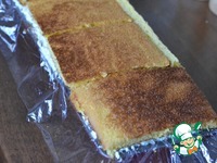Используя нож, вырезать дно и бока рулета по размерам вашей формы. Проложить дно бисквитом. |