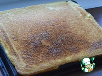 Взбить яйца с сахаром. Добавить муку, взбить. Противень простелить бумагой для выпечки. Вылить тесто, разровнять. Выпкать в разогретой духовке при температуре 180 градусов 15 минут. |