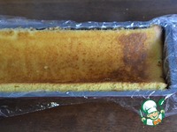 Форму для выпечки простелить пищевой пленкой так, чтобы края свисали. У меня форма полукруглая Можно использовать квадратную для кексов. |