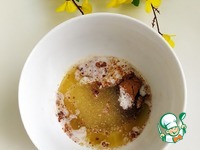 Для начинки соединить размягченное масло (50 гр.), сахар (40 гр.) и молотую корицу. И все перемешать. |