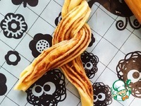 Свернуть в рулет. Острым ножом разрезать рулет вдоль практически до конца, оставляя лишь небольшой хвостик. |