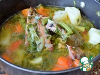 Описание: Немного разных овощей, копчёные свиные рёбра и на столе ароматное, сытное, богатое блюдо. Такое и гостям подать не стыдно, главное готовить с вдохновением, от этого рагу станет только вкуснее.