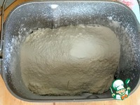 Тесто я буду замешивать в хлебопечке. В ведёрко хлебопечки вылить молоко с дрожжами, просеять муку с солью. |