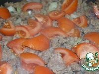 Добавить томатную пасту, хорошо перемешать. Положить мелко порезанный чеснок, перец, зелень, посолить и налить водичку. Довести до кипения, потомить на медленном огне пару минут. Готово. |