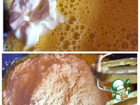 Добавить йогурт и взбивать на сильных оборотах миксера ещё минуту. Всыпать муку и разрыхлитель. Взбить совсем не много. |