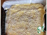 В форму для выпечки (24 см) вылить тесто, сверху рассыпать кунжут. Выпекать при 180 гр около 50 минут. Ориентируйтесь на сухую деревянную шпажку. |
