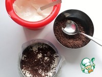 Охлажденный десерт поставить на чашку и полить шоколадной глазурью. Глазурь: молоко разогреть до горячего состояния, положить шоколад, растворить постоянно помешивая до однородности. |