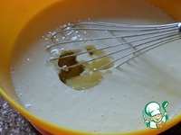 Влить масло, добавить соду. Ещё раз тщательно взбить. |