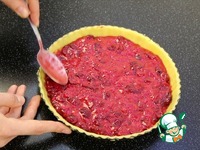 Размер моей формы 21 см. в диаметре, высота 3. Убираю тесто на 1 час в холодильник. |