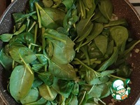Добавить шпинат и продолжить обжаривать, пока листья не свернутся (около 5 минут). |