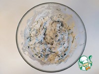 Переложить шпинат в миску. Добавить к нему рикотту, тёртый пармезан, соль, перец, мускатный орех. |