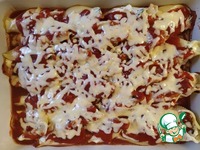Залить оставшимся томатным соусом. |