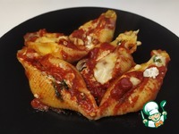 Описание: Конкильони - огромные ракушки, которые фаршируются всевозможными начинками (от сладких до мясных).