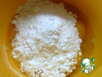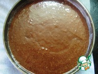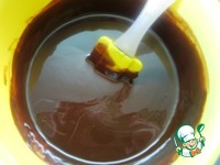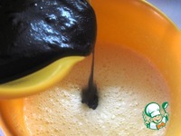 Влить шоколадно-мучную смесь в яичную, аккуратно и тщательно перемешивая лопаткой. Тесто получается жидким, стекает с лопатки. |