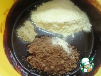 Добавить к шоколадной смеси кукурузную муку, какао и имбирь (использовала сухой, измельченный имбирь). Аккуратно перемешать лопаткой. |