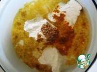 Для соуса соединить в кастрюльке молоко, сливочный сыр (использовала Альметте сливочный), соль, французскую горчицу и карри. |