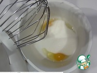 Смешиваем муку, разрыхлитель, ванилин и добавляем в яичную смесь. |