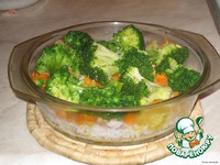 Отварить рис и брокколи до готовности. Обжарить лук с морковкой. Сложить в форму в такой последовательности: рис - рыба-морковь с луком -брокколи. Смешать в отдельной посуде сметану с майонезом и добавить соль и приправу для риса и макарон. Вылить в форму. Поставить в духовку на 20 -25 минут.
