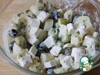 Полить соусом салат и аккуратно перемешать. Убрать в холодильник минут на 30. |
