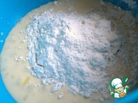Смазать нагретую сковороду и влить несколько ложек теста в центр. |