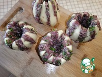 Через 40 минут достать. Снять фольгу и посыпать середину картофеля, где наши углубления, натёртым на крупной тёрке сыром. Отправить снова в духовку на 20 минут. Ориентируйтесь на свою духовку. |