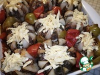 Описание: Картошка с фаршем, сыром и овощами в духовке. Вкусный ужин или обед для всей семьи.