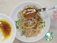 Пока грибы горячие добавляем их к огурцам и щедро все поливаем соусом. Перемешиваем все составляющие и даем настояться 10-15 мин. |