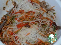 Описание: Салат с фунчозой - удивительное соединение азиатской вермишели из бобов и традиционных овощей и мяса.
